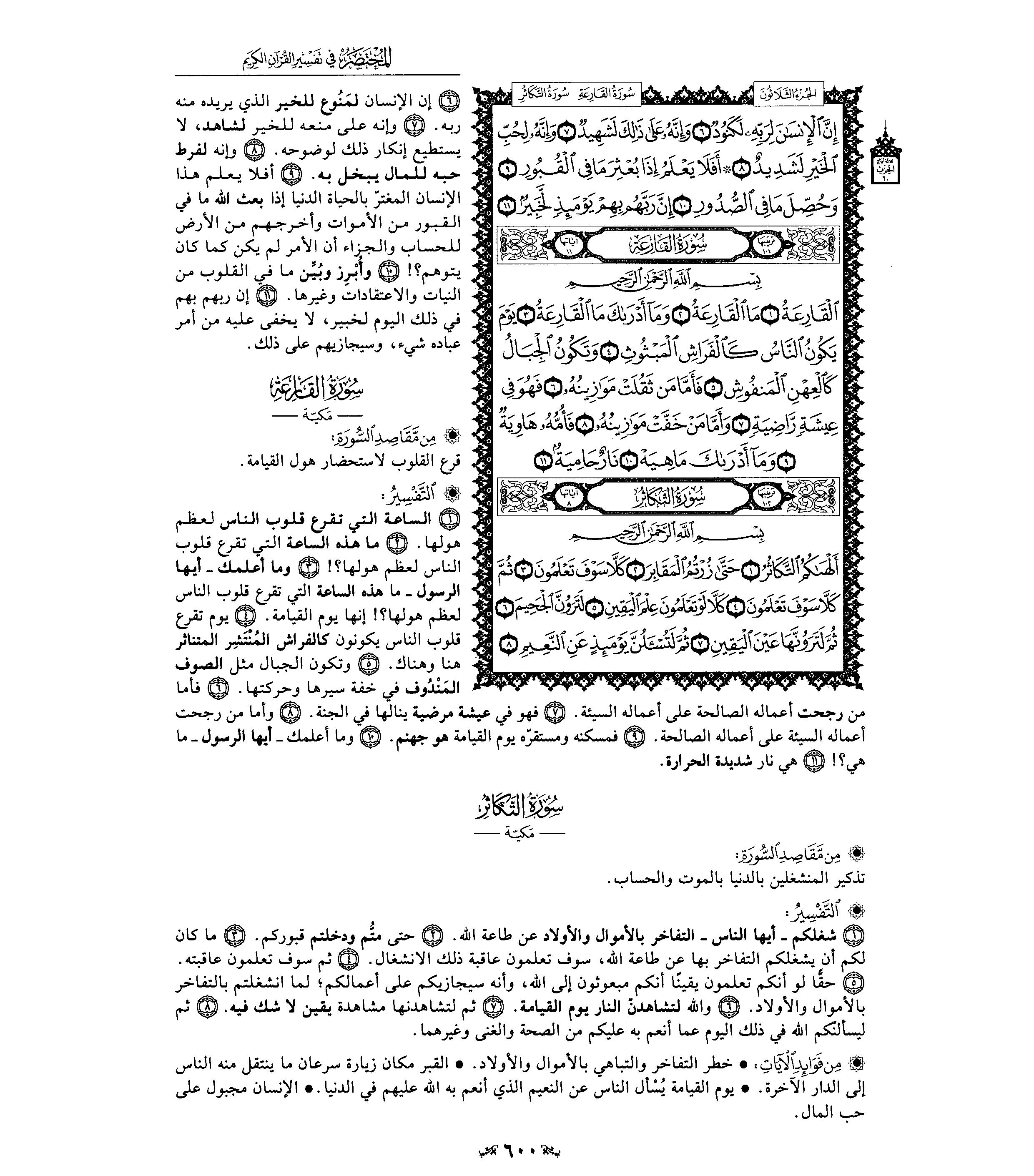 2- ومن أغراض السورة الكريمة: النهى عن التفاخر والتكاثر، والحض على التزود بالعمل الصالح، وعلى ما ينجى من العذاب، والتأكيد على أن يوم القيامة حق، وعلى أن الحساب حق، وعلى أن الجزاء حق ...