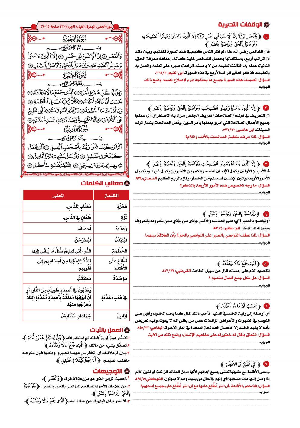 الوسيط لطنطاوي : وَالْعَصْرِ