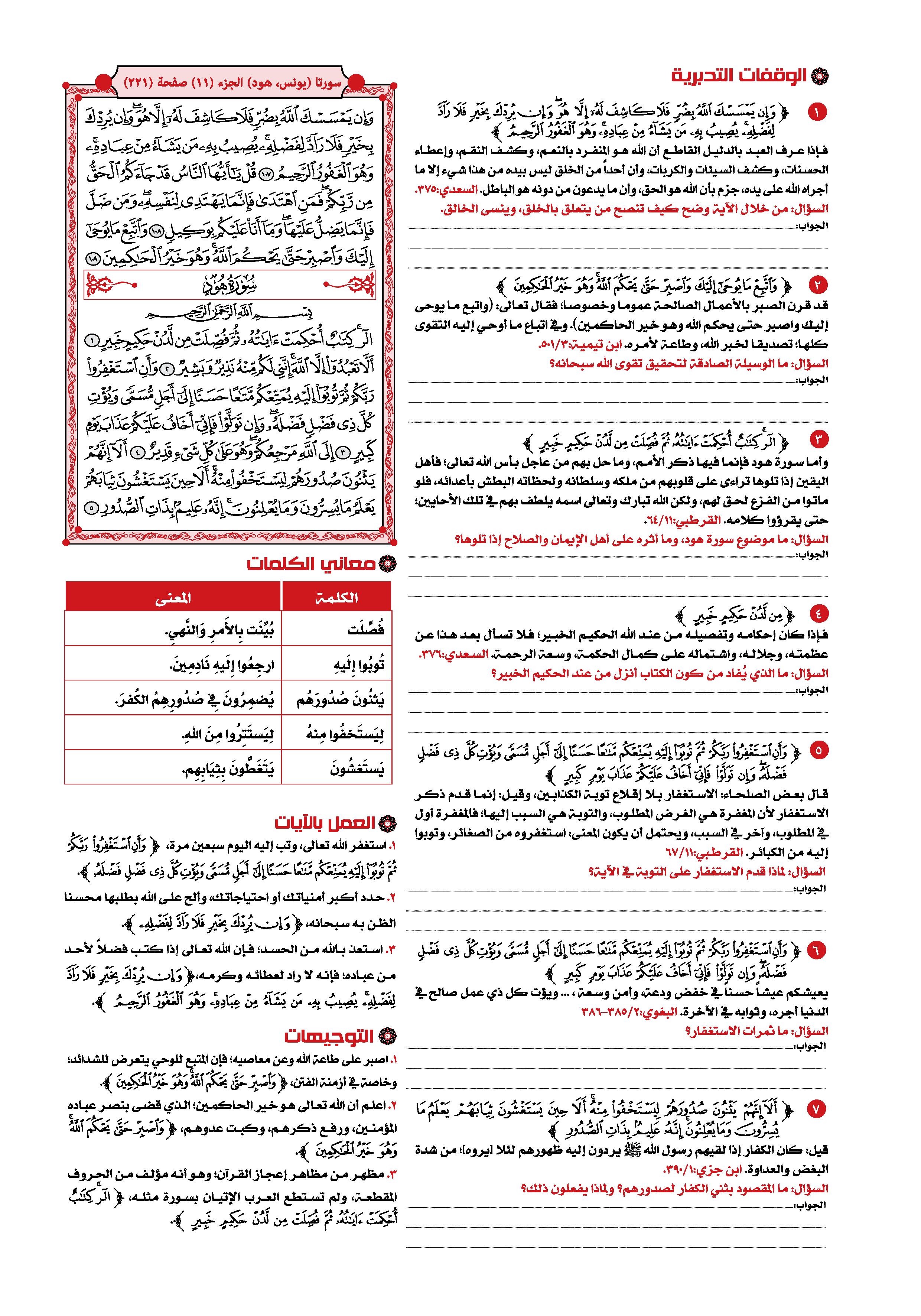قوله : الر كتاب أحكمت آياته ثم فصلت من لدن حكيم خبير ألا تعبدوا إلا الله إنني لكم منه نذير وبشير وأن استغفروا ربكم ثم توبوا إليه يمتعكم متاعا حسنا إلى أجل مسمى ويؤت كل ذي فضل فضله وإن تولوا فإني أخاف عليكم عذاب يوم كبير إلى الله مرجعكم وهو على كل شيء قدير