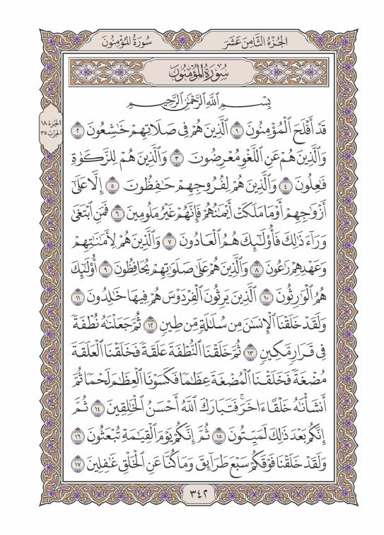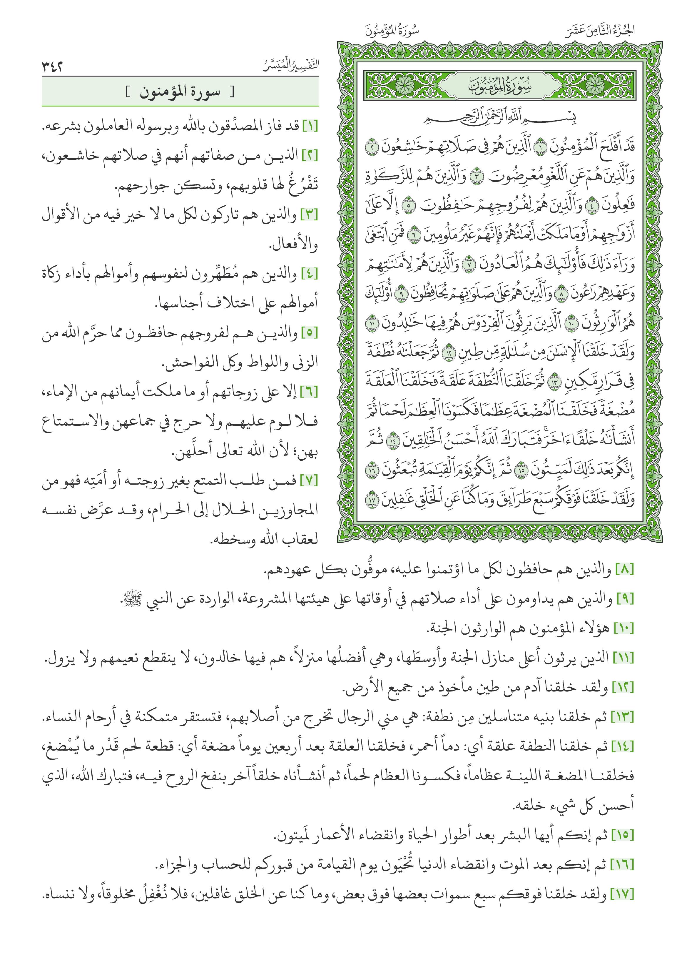 1- سورة «المؤمنون» من السور المكية، وعدد آياتها ثماني عشرة آية ومائة، وكان نزولها بعد سورة الأنبياء.