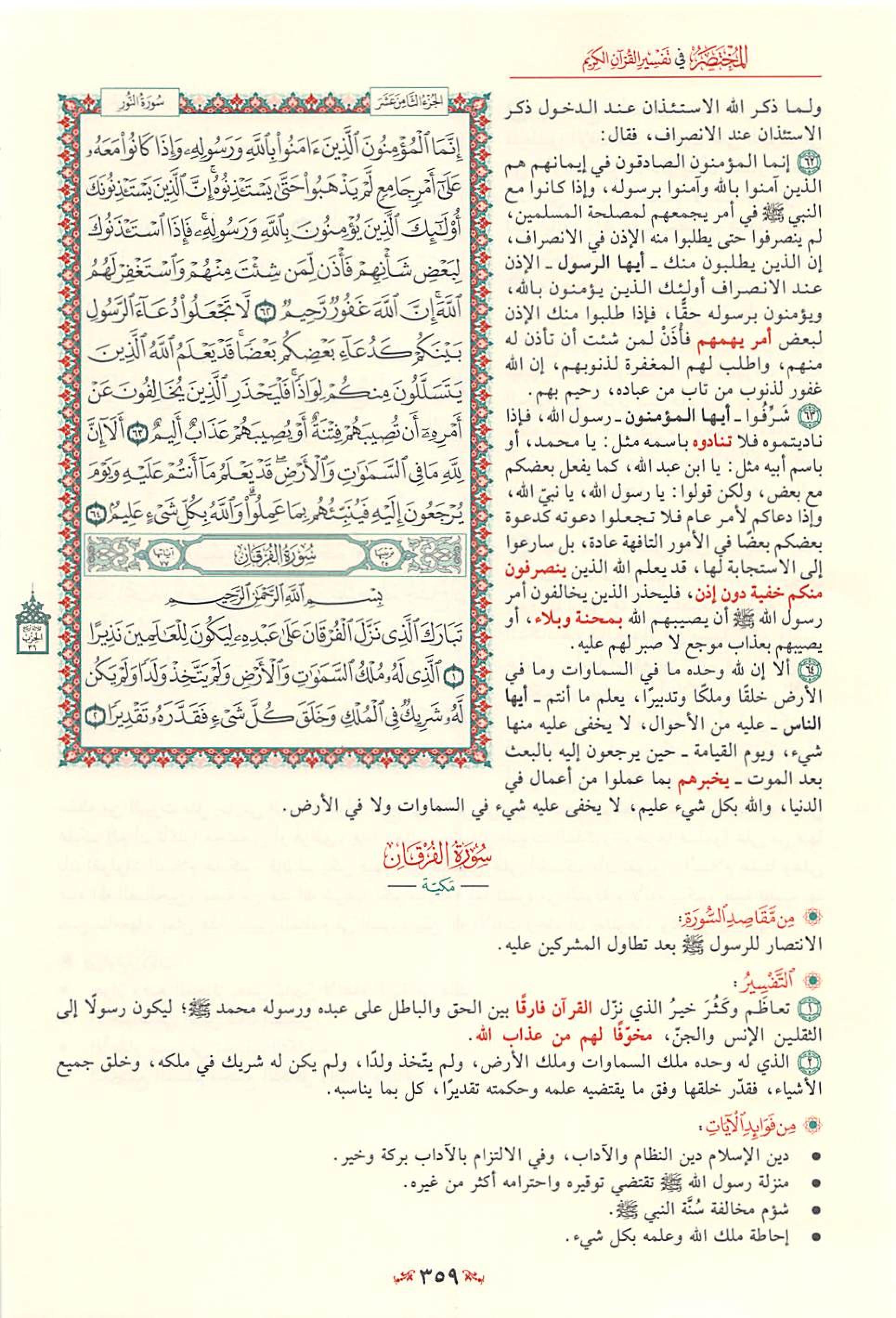 ابن كثير : تَبَارَكَ الَّذِي نَزَّلَ الْفُرْقَانَ عَلَىٰ عَبْدِهِ لِيَكُونَ لِلْعَالَمِينَ نَذِيرًا