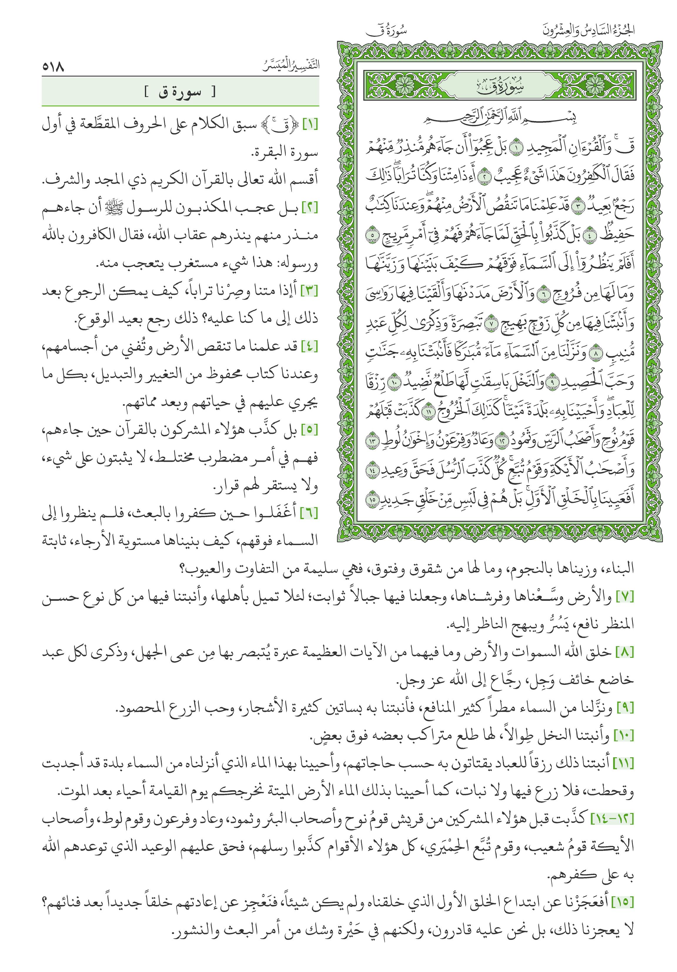 السعدى : ق ۚ وَالْقُرْآنِ الْمَجِيدِ