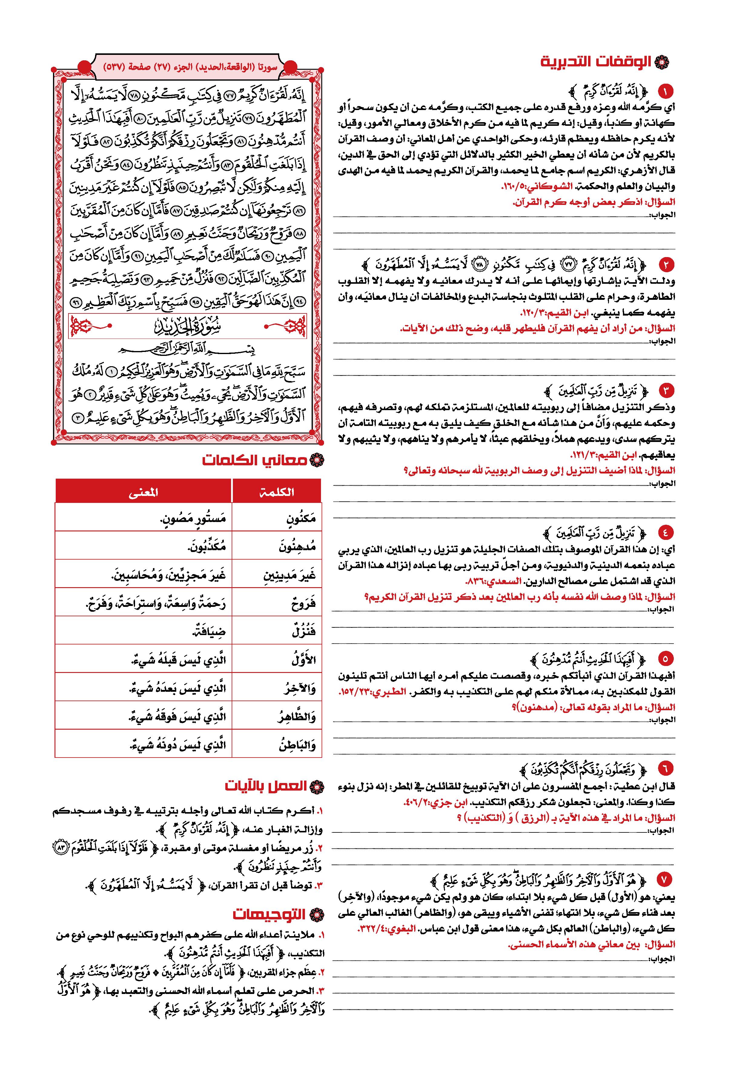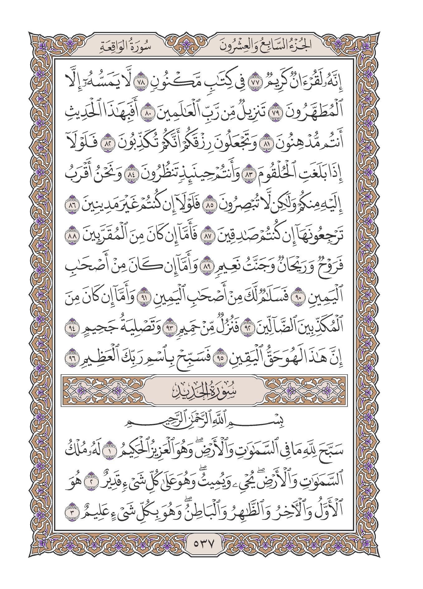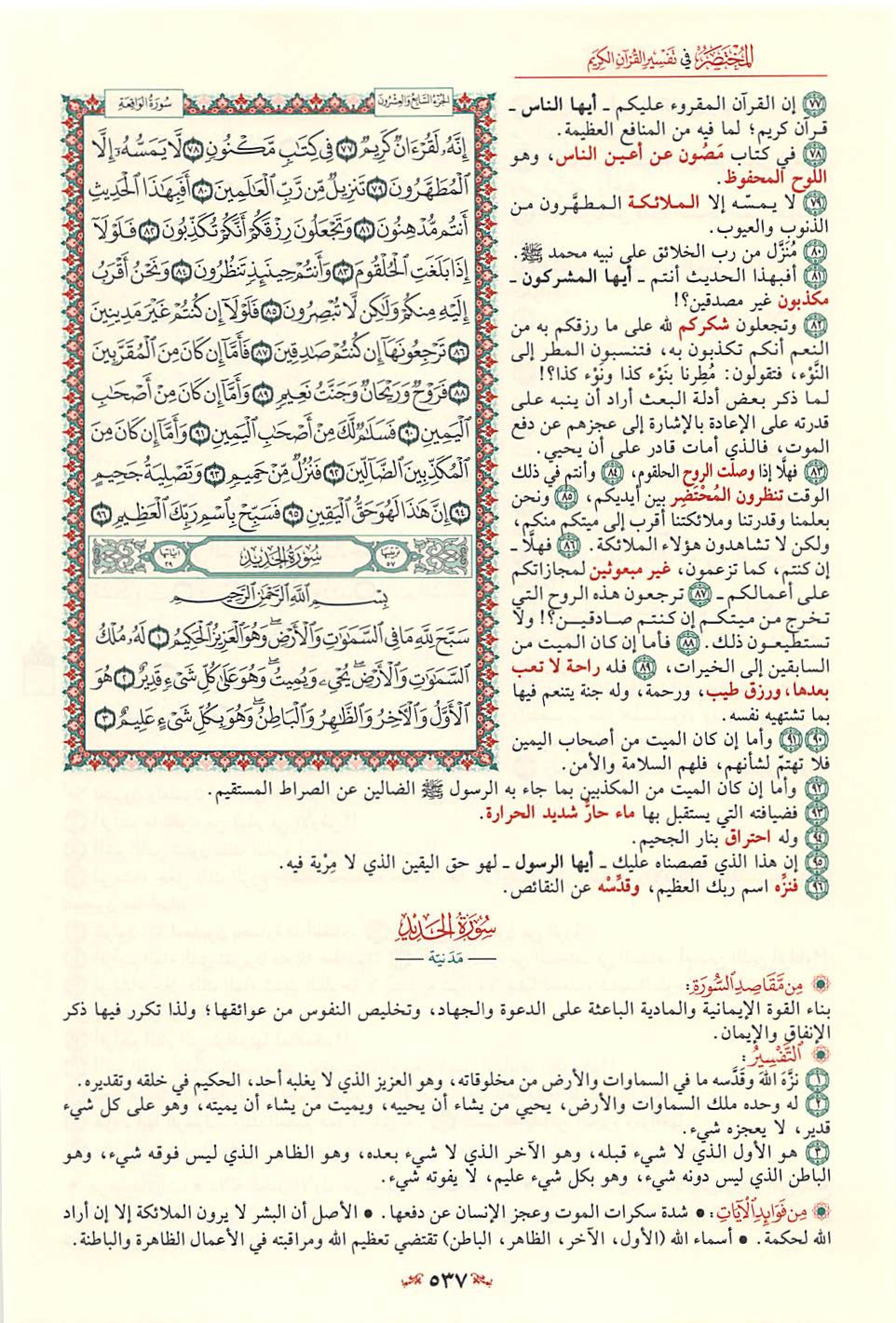 1- سورة «الحديد» هي السورة السابعة والخمسون في ترتيب المصحف، وسميت بذلك لقوله- تعالى- فيها: وَأَنْزَلْنَا الْحَدِيدَ فِيهِ بَأْسٌ شَدِيدٌ وَمَنافِعُ لِلنَّاسِ.