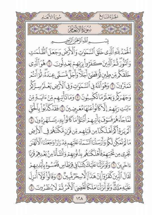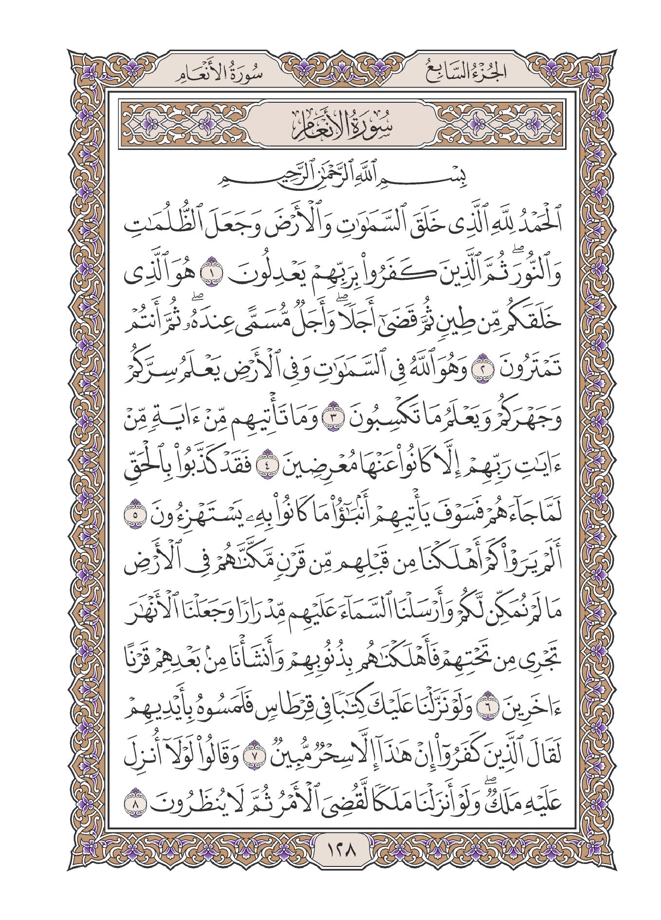 سورة الأنعام عدد آياتها خمس وستون ومائة آية وهي أول سورة مكية من طوال المفصل بالنسبة لترتيب المصحف، وتعتبر بالنسبة لهذا الترتيب السورة السادسة، فقد سبقتها سور: