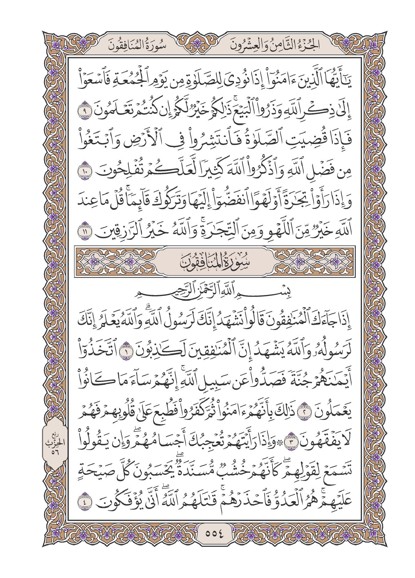 1- سورة «المنافقون» من السور المدنية الخالصة، وعدد آياتها إحدى عشرة آية، وكان نزولها بعد سورة «الحج» ، وقبل سورة «المجادلة» «1» .
