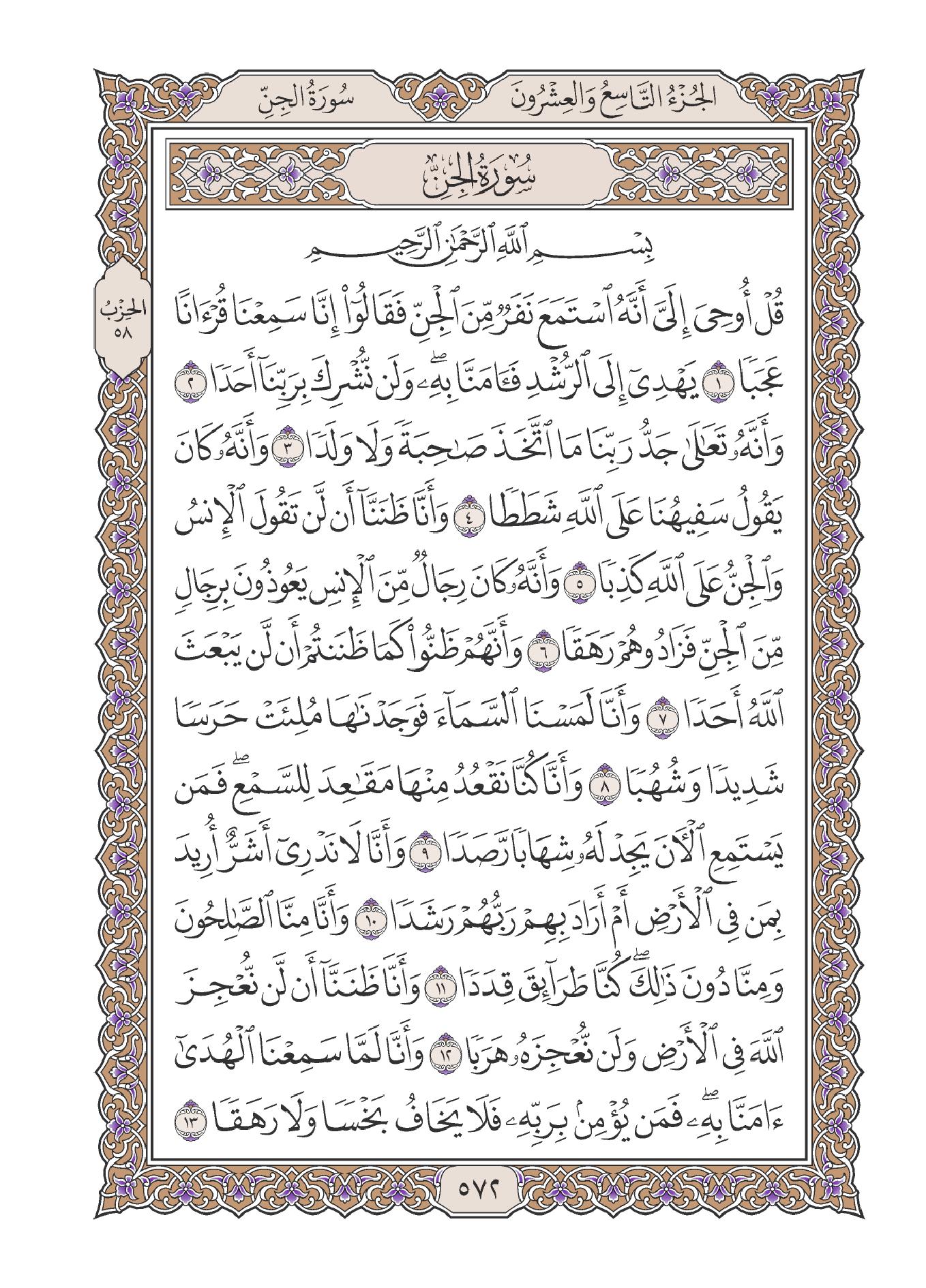Mekke döneminde inmiştir. 28 âyettir. Ağırlıklı olarak cinlerden bahsettiğiiçin “Cin sûresi” adını almıştır. Sûrede ayrıca tevhit, peygamberlik ve öldüktensonra dirilmek gibi meseleler konu edilmektedir.