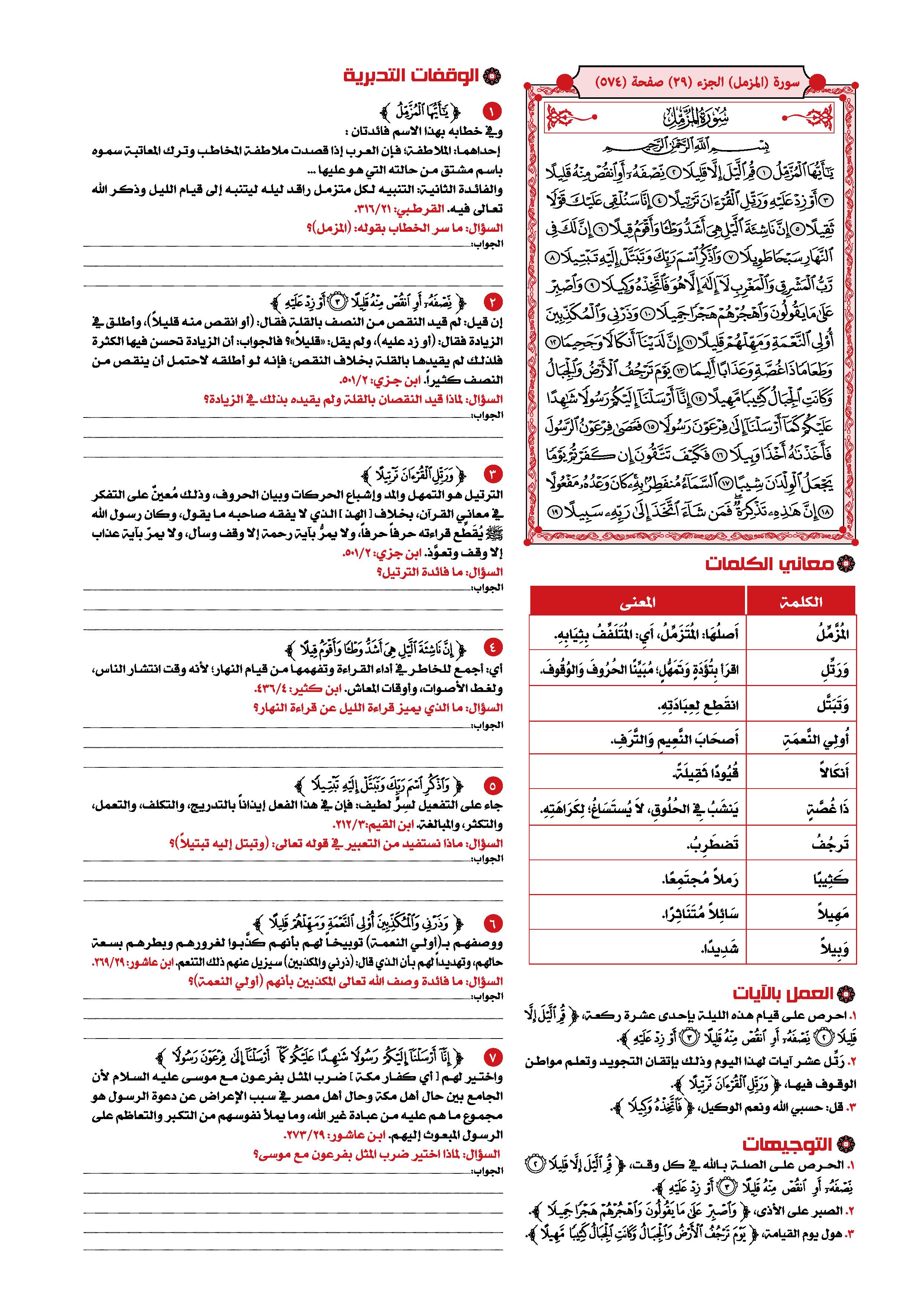 الوسيط لطنطاوي : يَا أَيُّهَا الْمُزَّمِّلُ