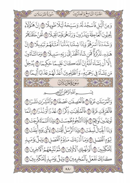 Kur'an-ı Kerim metninin Türkçe Transkripsiyonu - Turkish Transcription of the Holy Quran - النسخ التركي للقرآن الكريم Velmurselâti ‘urfâ(n)