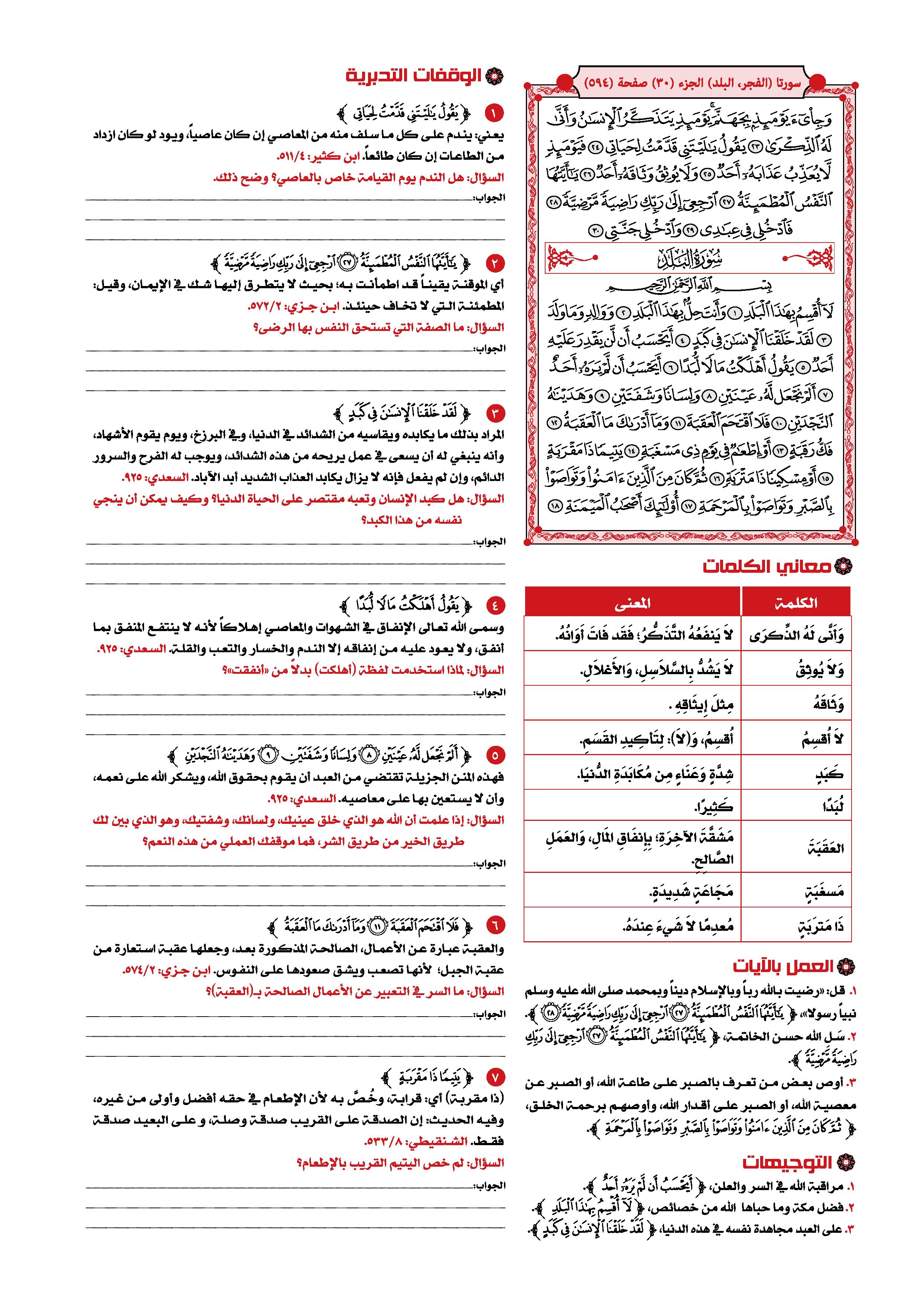 1- سورة «البلد» وتسمى سورة «لا أقسم» من السور المكية الخالصة، وعلى ذلك سار المحققون من المفسرين.